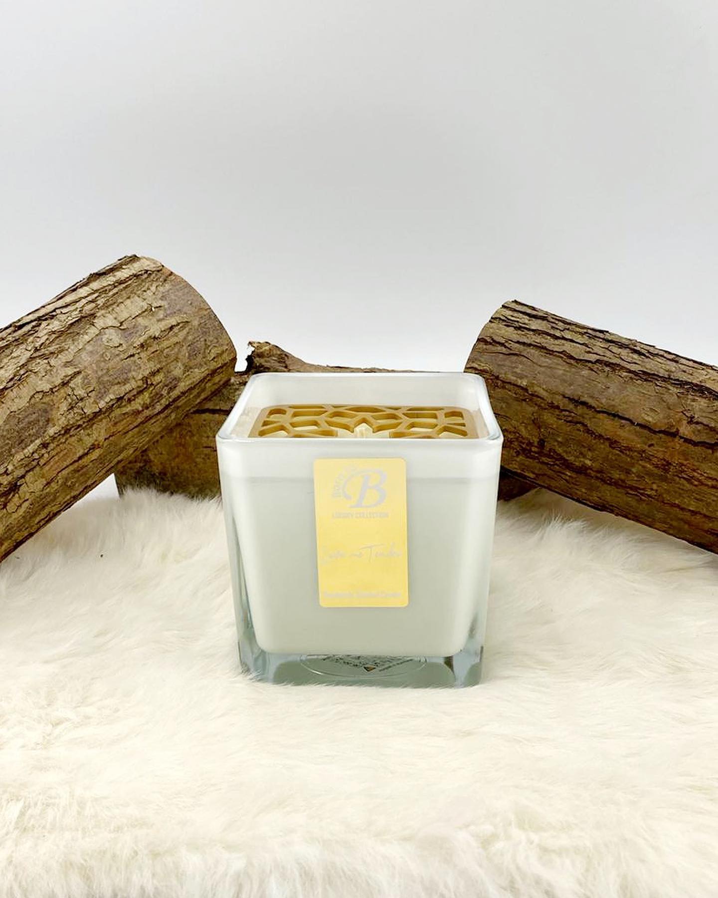 Handgegoten kaarsen gemaakt met de hoogste kwaliteit plantaardige sojawas en parfums uit Grasse. Elke kaars wordt gepresenteerd in een witte glazen houder met een door ons ontworpen en gesneden acryl deksel. Het gaat vergezeld van een geschenkdoos met een stempel van bladgoud.