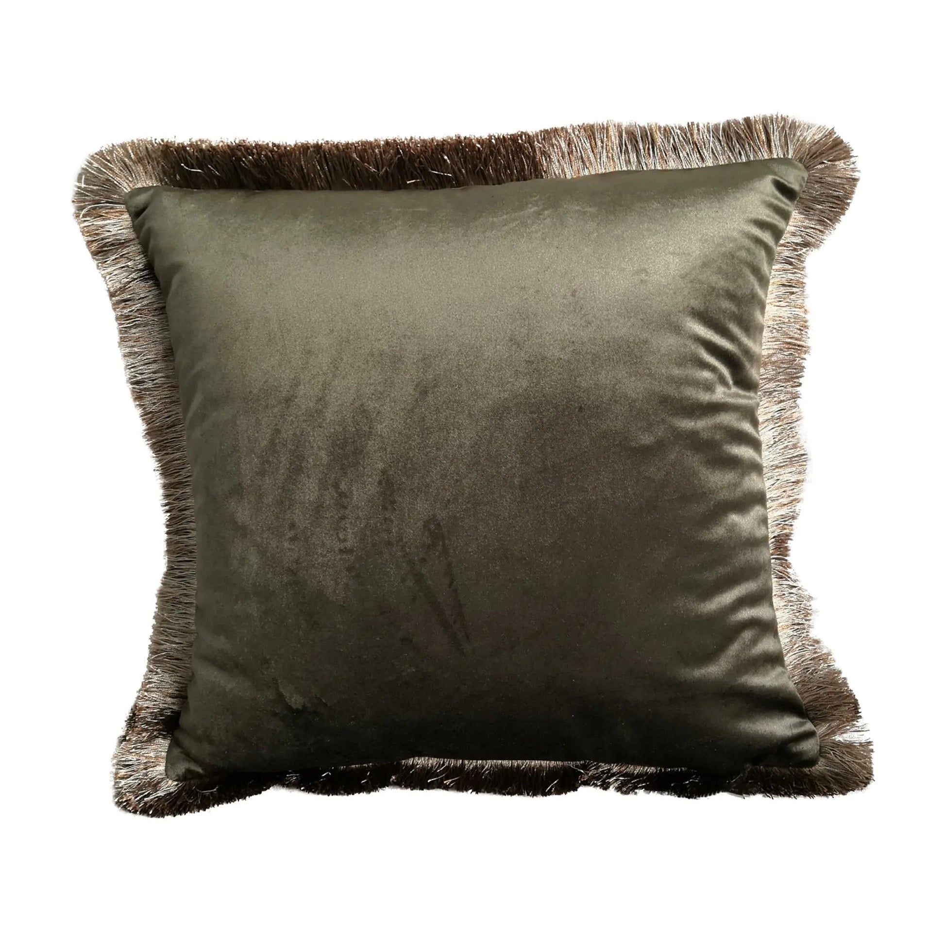 Kussen fluweel gouden franjes olijfgroen