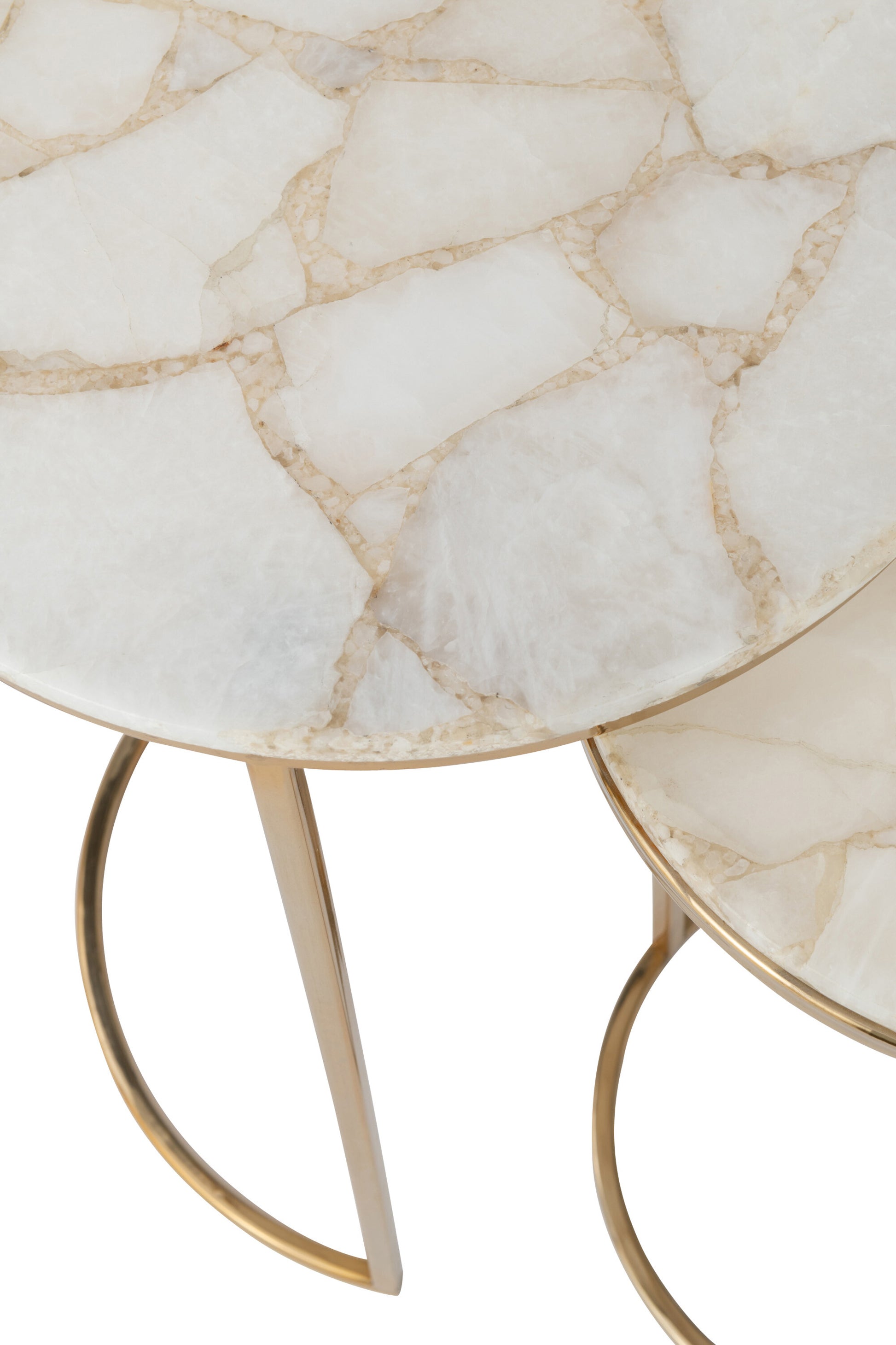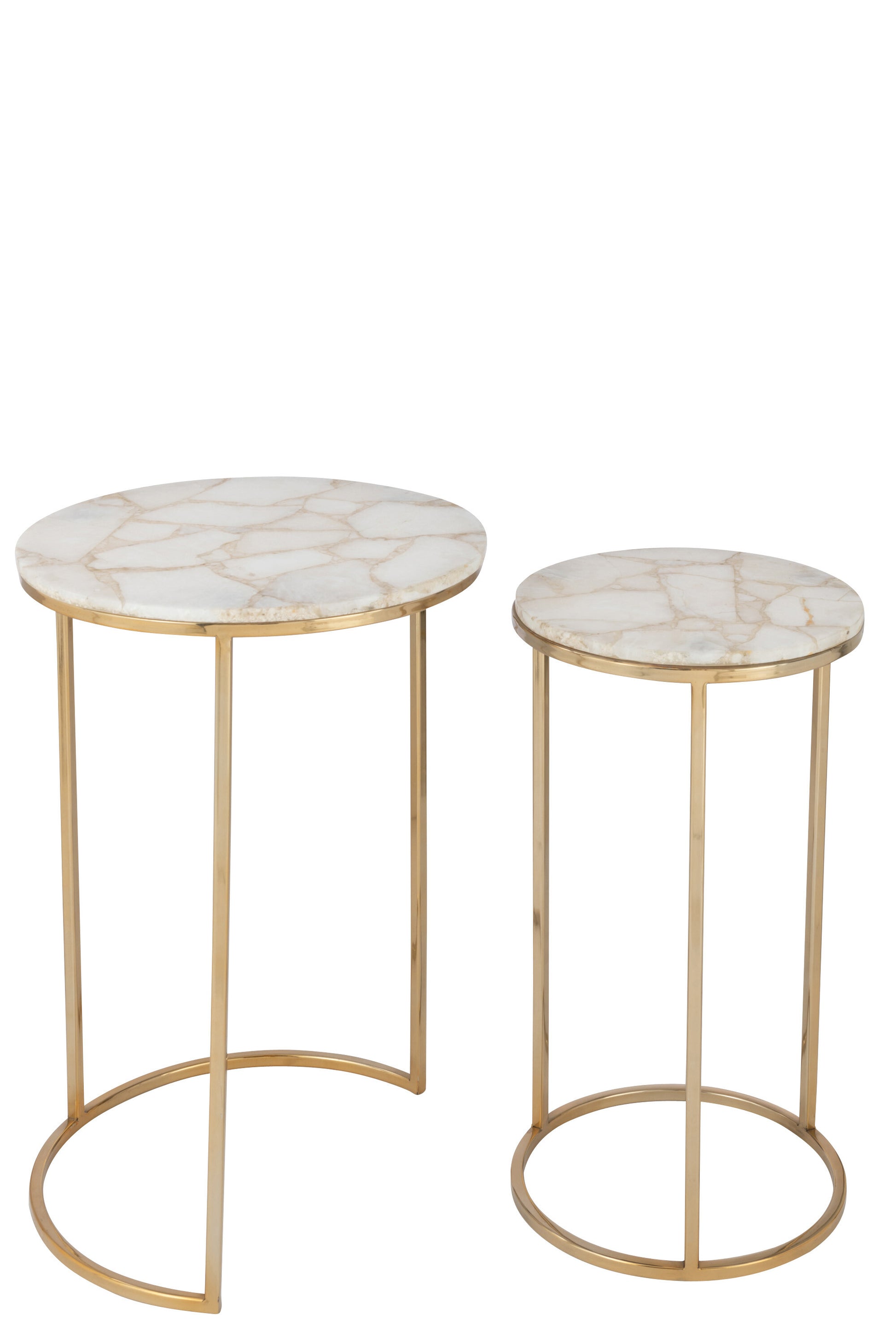 Set Van Twee Bijzettafels Kwarts Steen/Metaal Wit/Goud