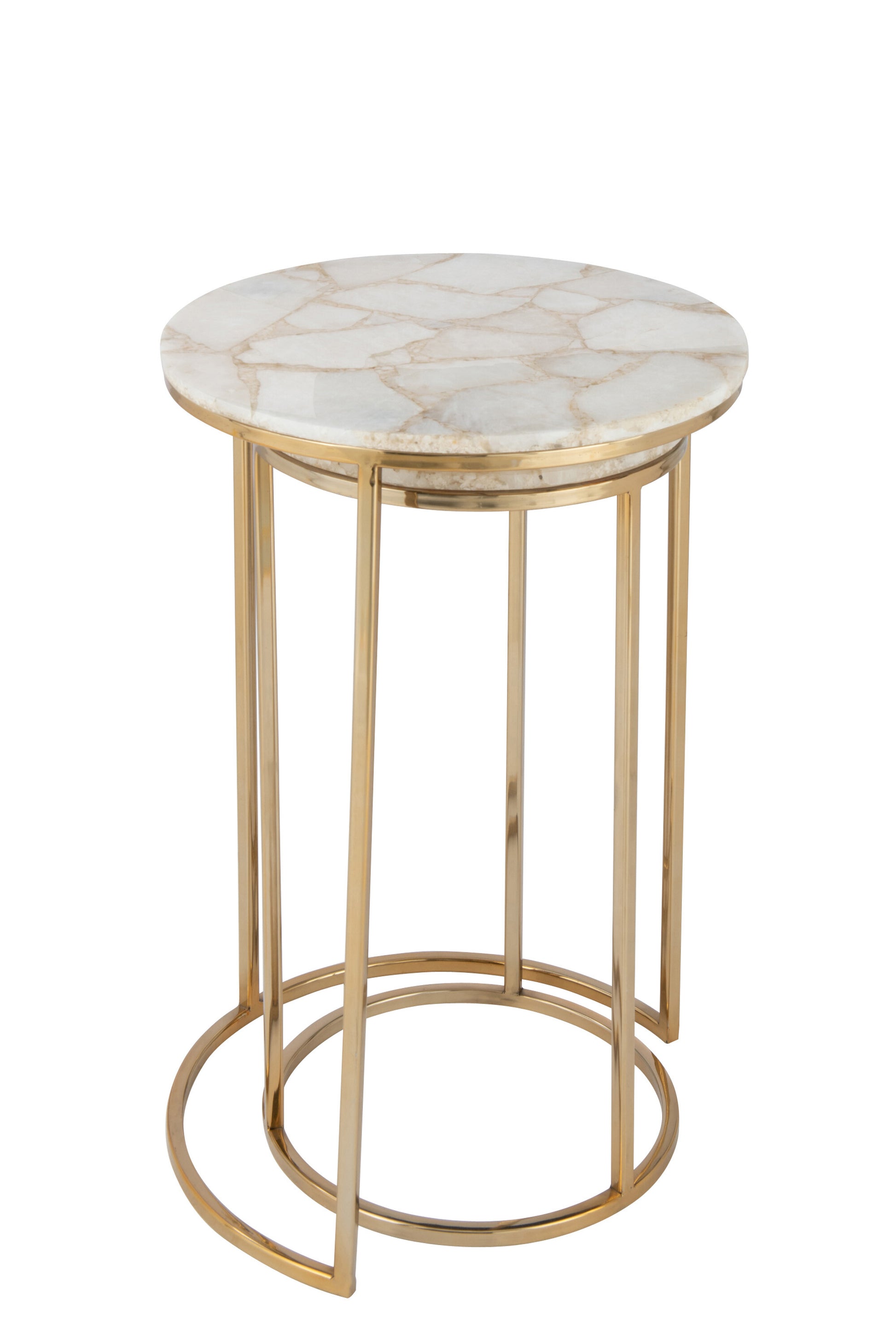 - L: 30cm x B: 30 cm x H: 53 cm Bijzettafel kwarts steen/metaal wit/goud small