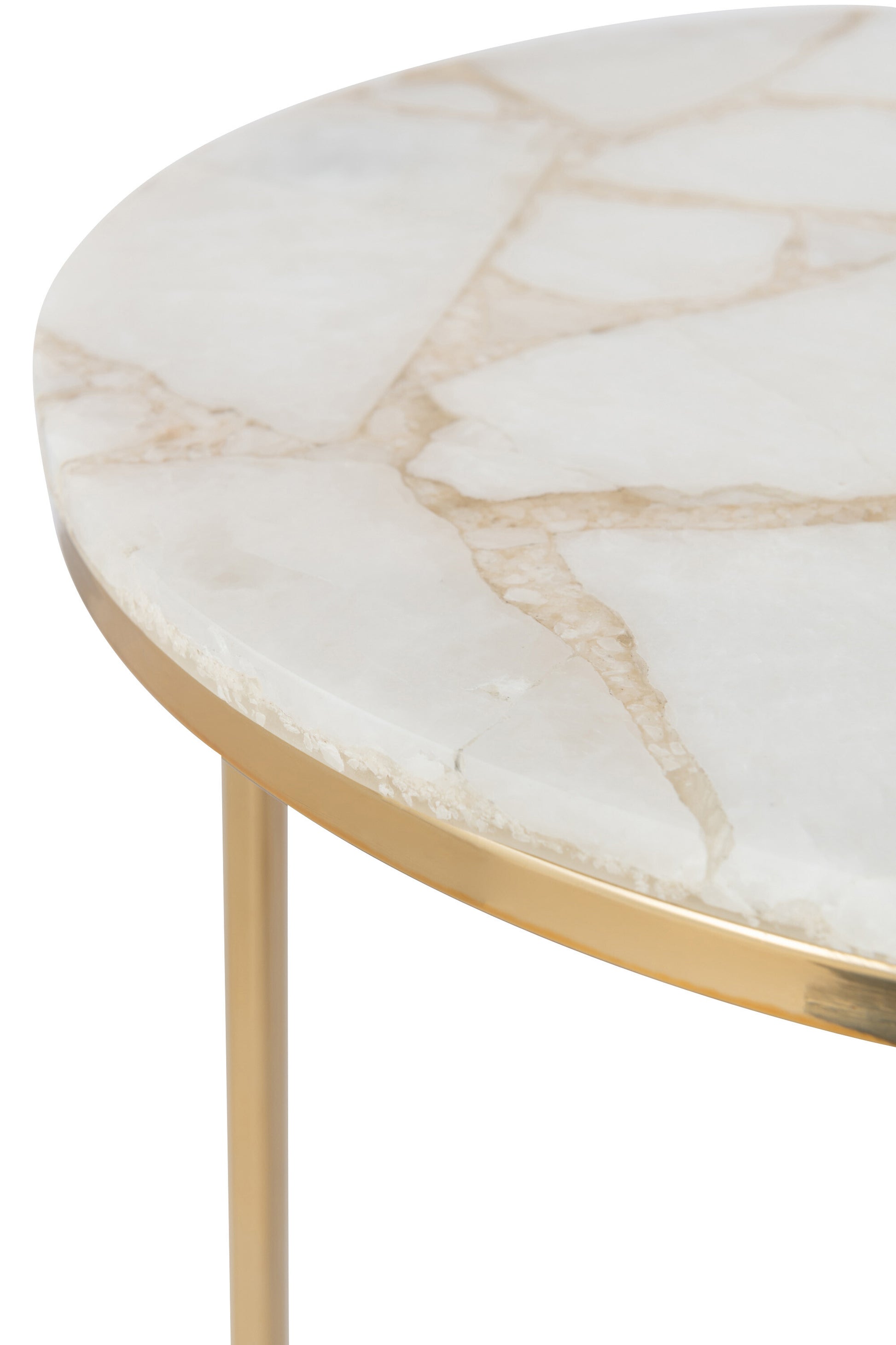 - L: 35.5cm x B: 35.5 cm x H: 61 cm Bijzettafel kwarts steen/metaal wit/goud large