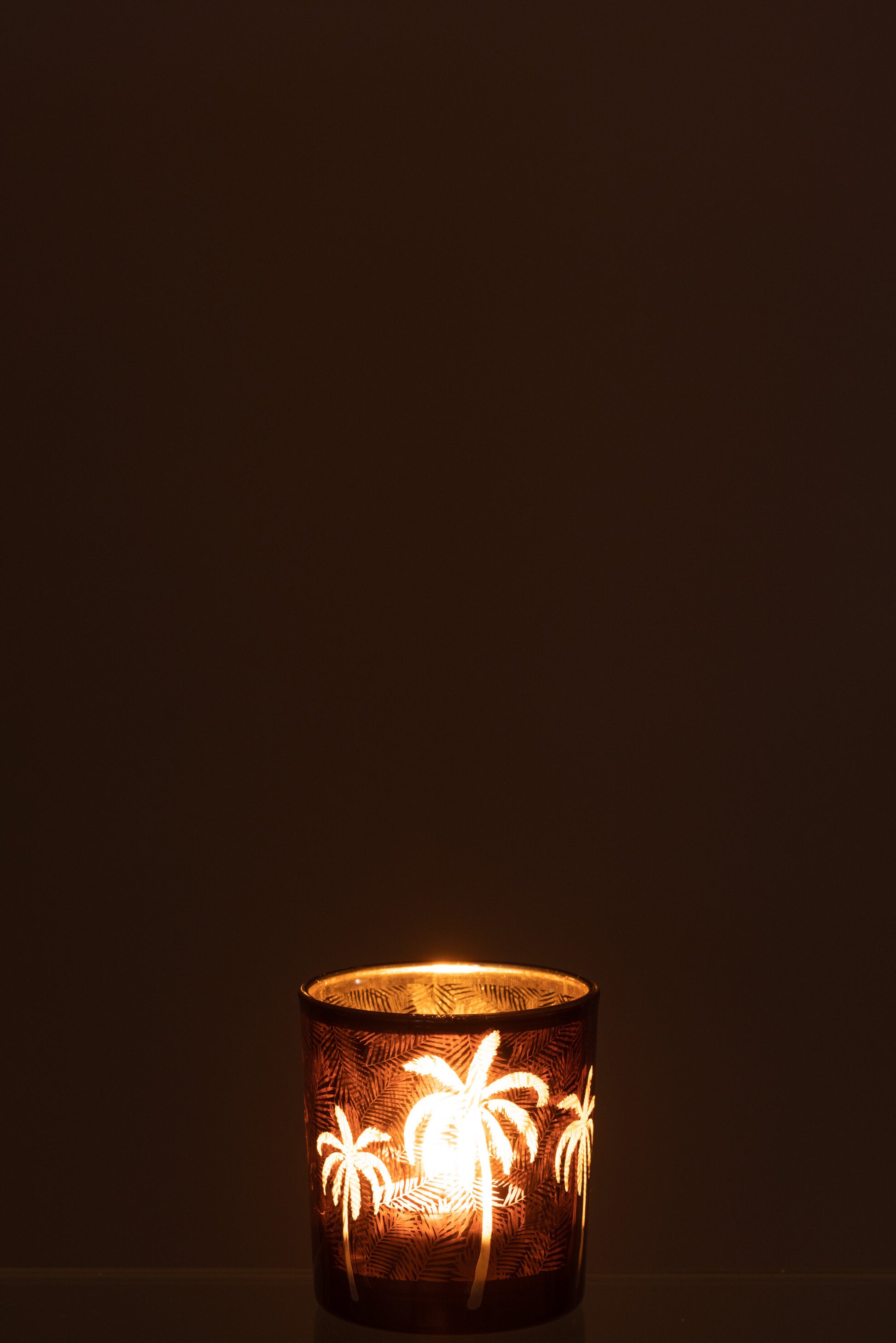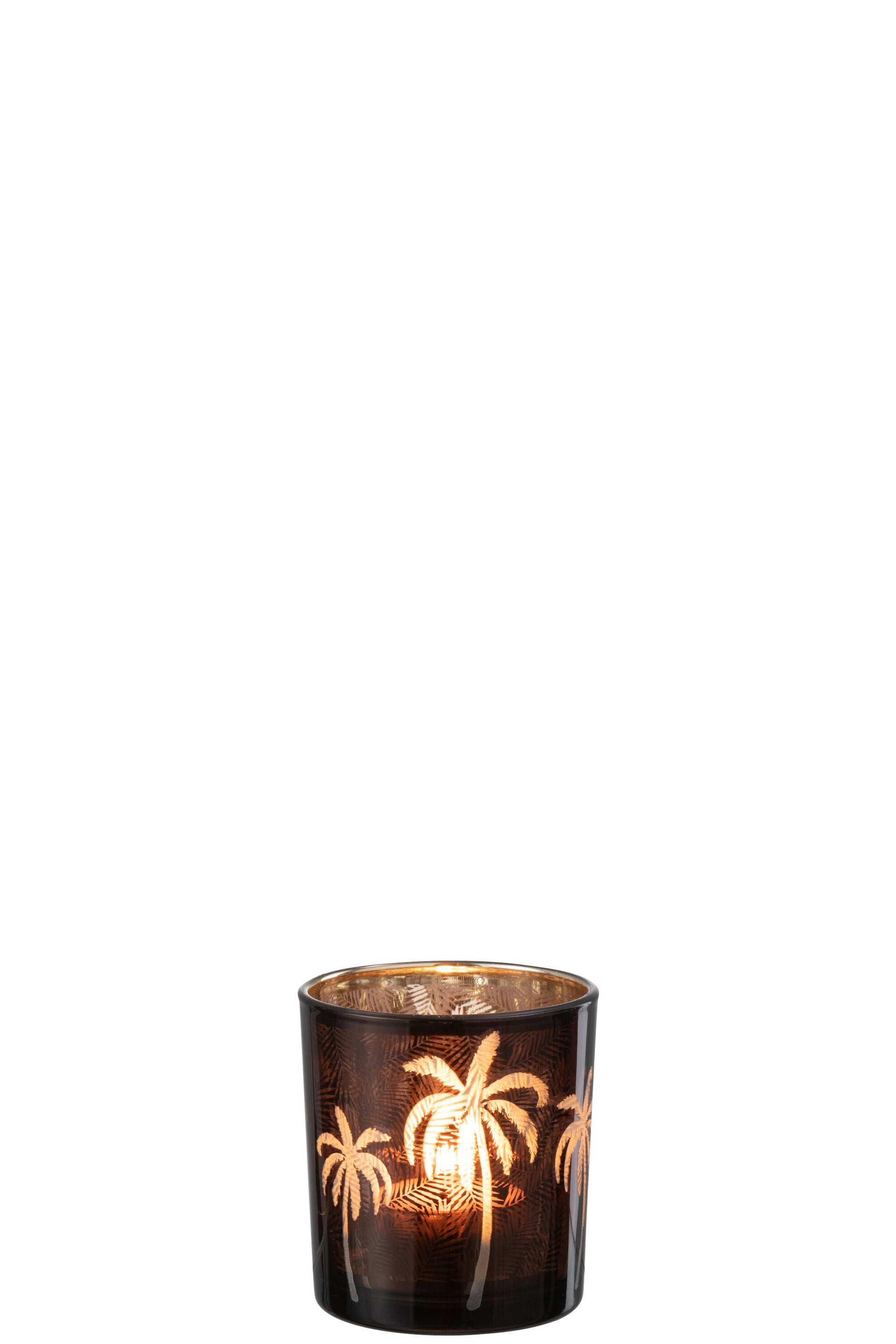 Theelichthouder Palmboom Glas Bruin Small