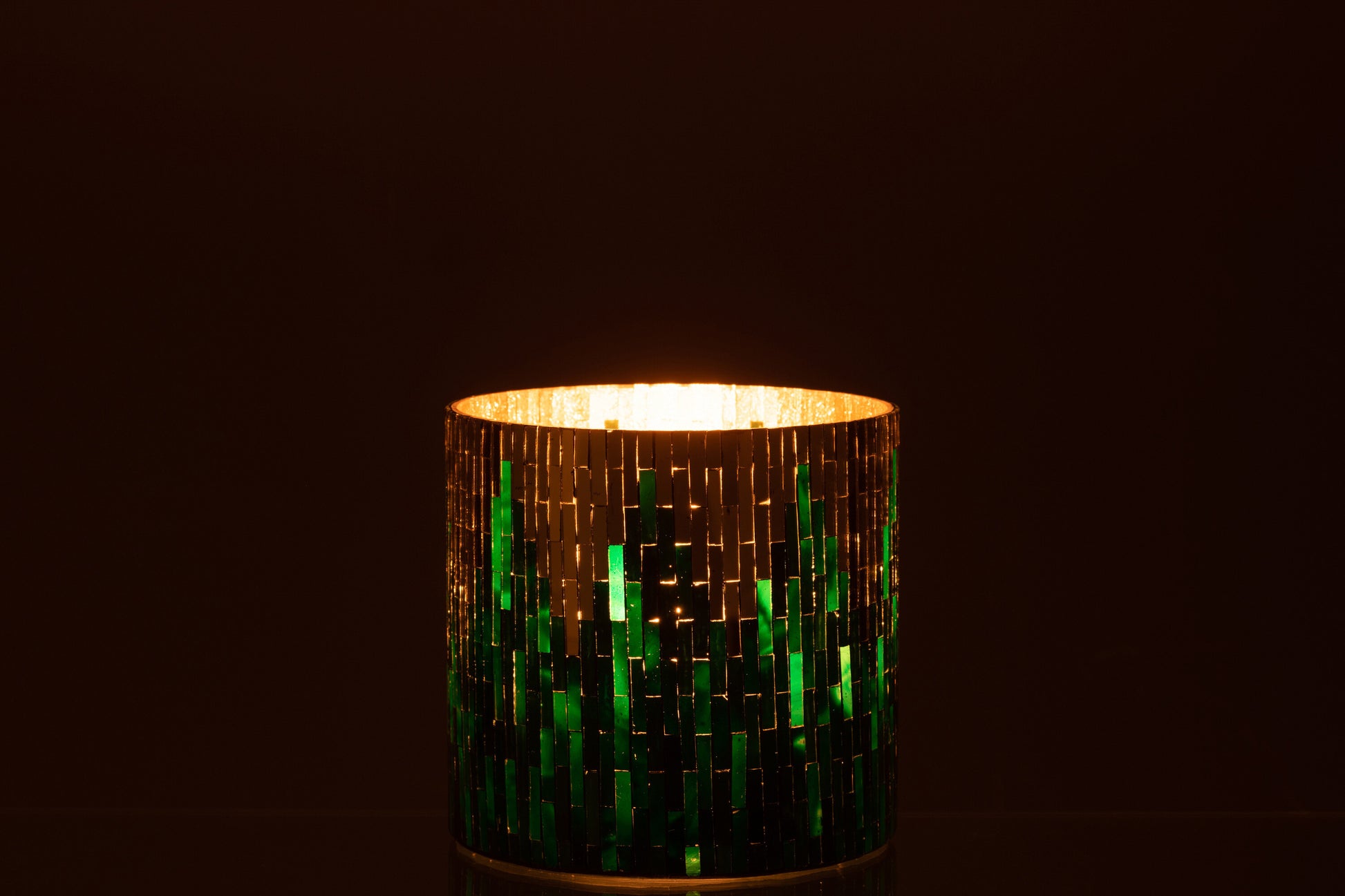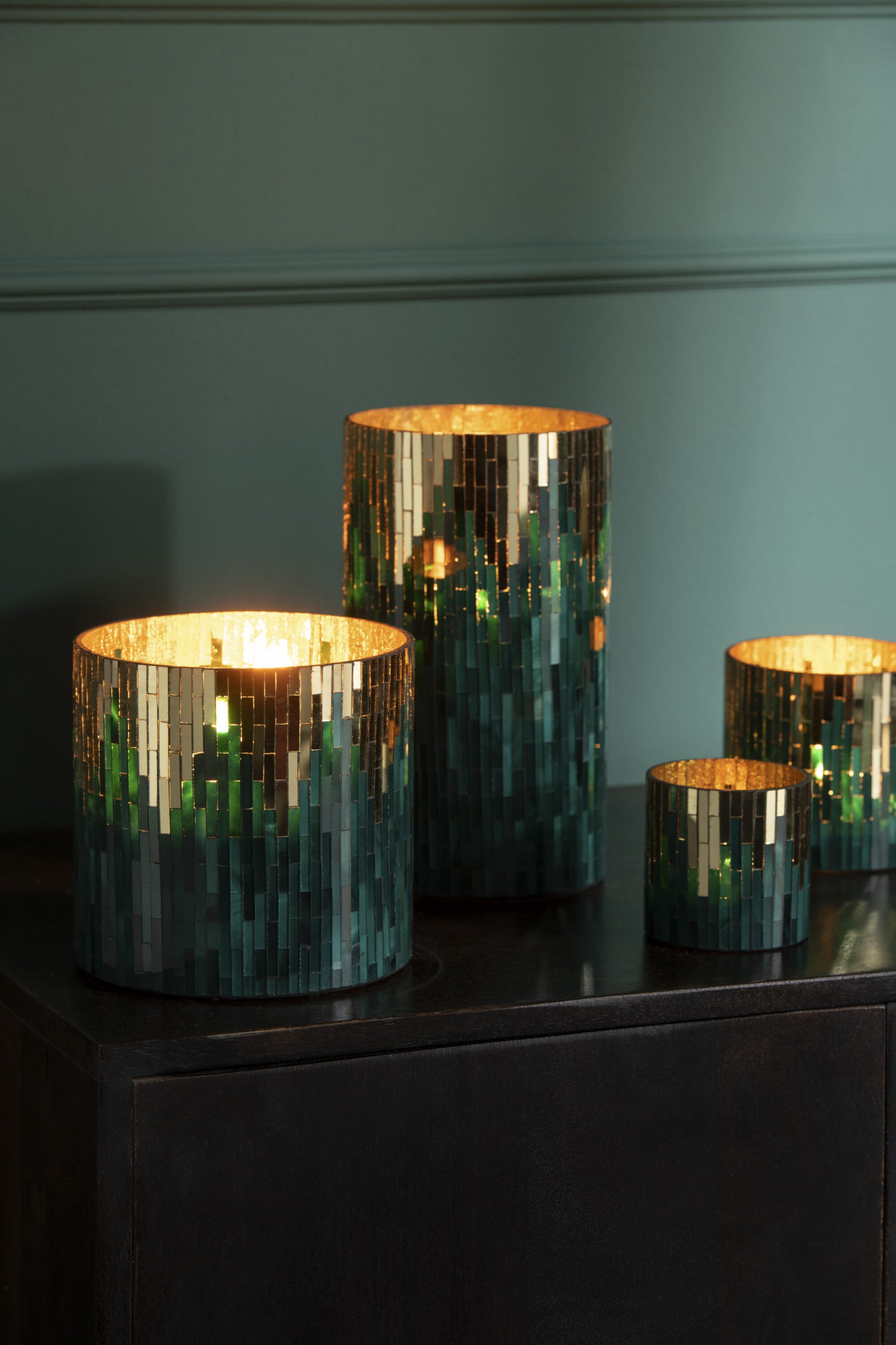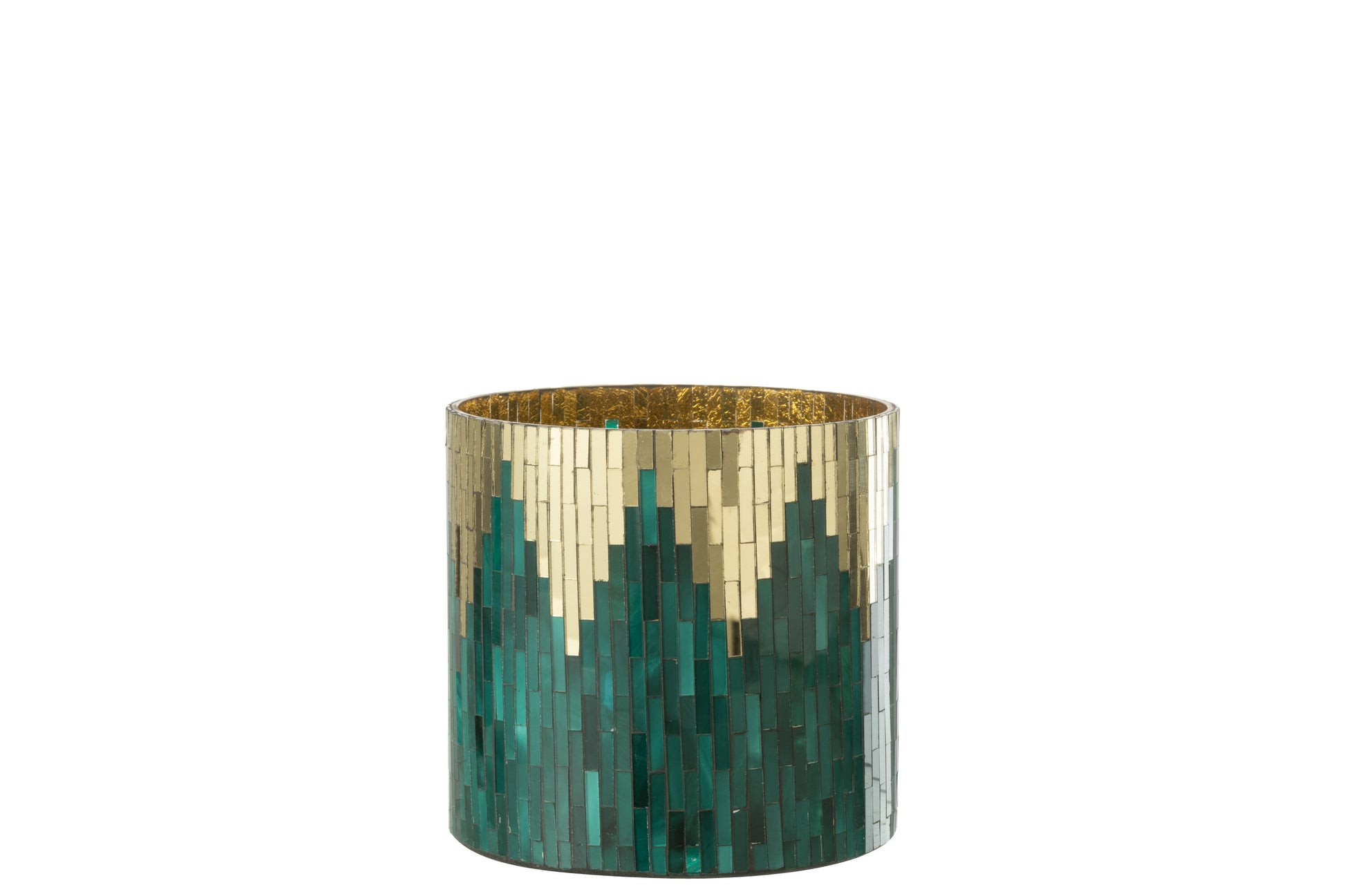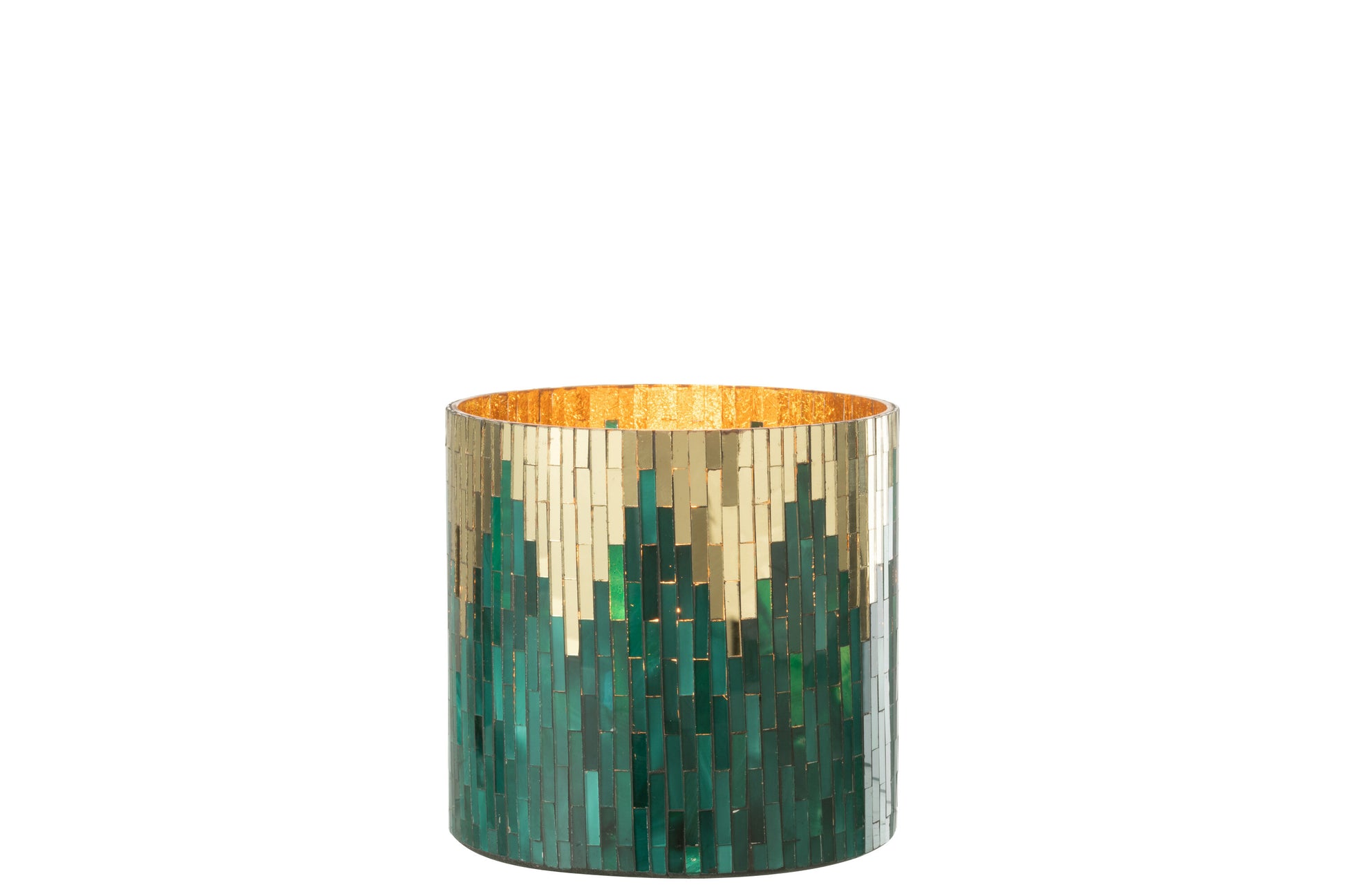 Windlicht Mozaiek Cilinder Groen/Goud Large